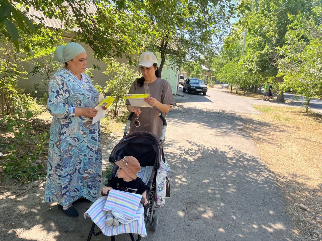 ✅Tadbir doirasida aholiga gigiyena qoidalariga rioya qilish, ichimlik suvi va oziq-ovqat mahsulotlarining xavfsizligini ta’minlash, yuqumli kasalliklarning erta belgilari va ularning oldini olish choralari, vaksinatsiya samaradorligi yuzasidan tushuntirish ishlari olib borildi. Shuningdek, targ‘ibot ishtirokchilariga mavzuga oid eslatma va bukletlar tarqatildi.