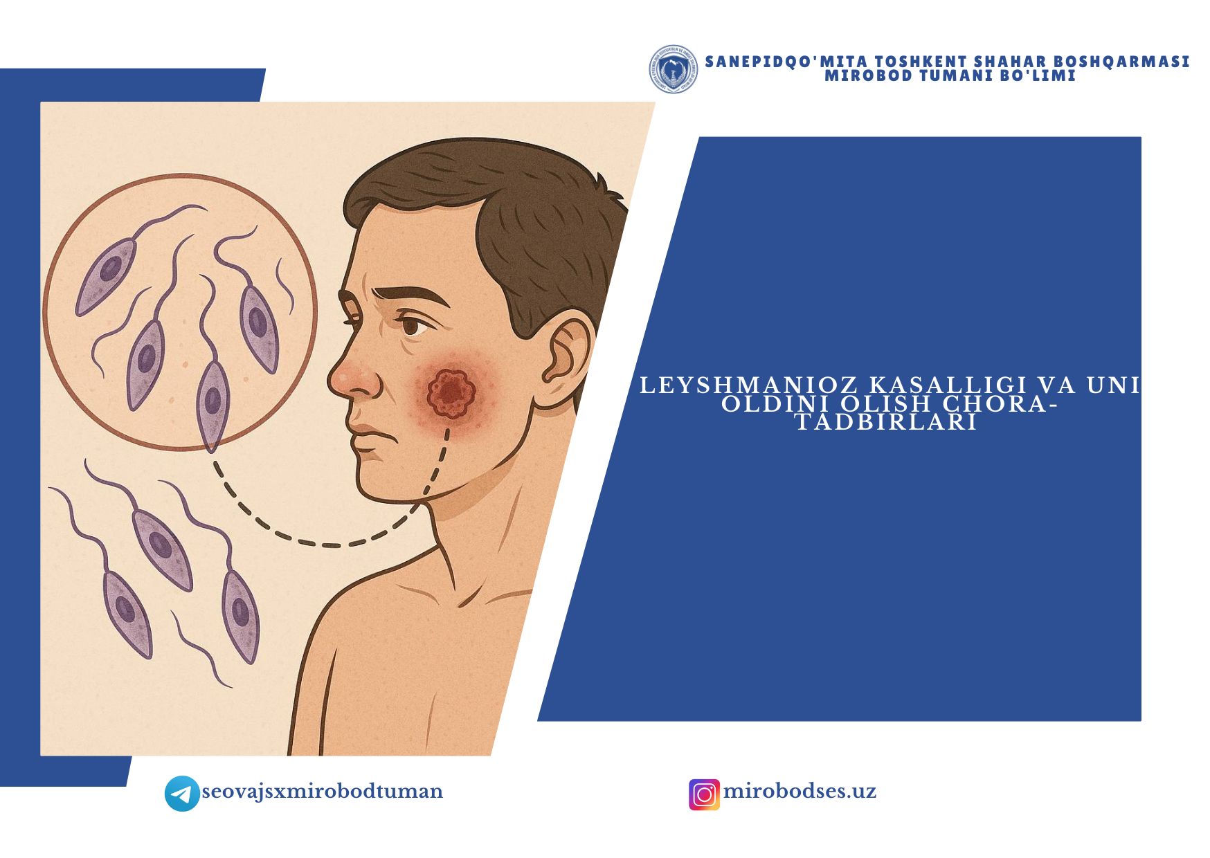 ‼️Leyshmaniozlar – odam va hayvonlar orasida uchraydigan bir guruh protozoy transmissiv kasallik bo‘lib, asosan ichki a’zolarni (vistseral leyshmaniozda) yoki teri va shilliq pardani (teri leyshmaniozida) zararlanishi bilan ta’riflanadi. Kasallik odamga Phelebotomus turiga mansub leyshmanioz bilan zararlangan moskitning chaqishi oqibatida yuqadi. O‘z navbatida moskit infeksiyani kasallangan odamni, it, yovvoyi hayvonlarni (chiyabori, tulki), har xil kemiruvchilarni (katta qum sichqoni, qizil dumli qum sichqoni, yapaloq tishli kalamush va ingichka panjali yumronqoziq va boshqalar)ni chaqishi natijasida zararlanadi. Zararlanish mavsumi – yoz, kasallanish mavsumi esa – shu yilning kuzi yoki kelasi yilning bahoriga to’g’ri keladi.
